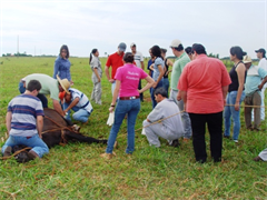 Foi realizado também a mochação dos bezerros. Método que retira parte do chifre que começa a nascer e cauterizam o local. “O tratamento após esse processo é importante, pois o cifre do boi concentra muitos sais minerais e como os animais são carentes de cuidado, esses sais tomam outro destino, que é o da nutrição do animal, juntando-se as proteínas”, explicou o professor Heitor.