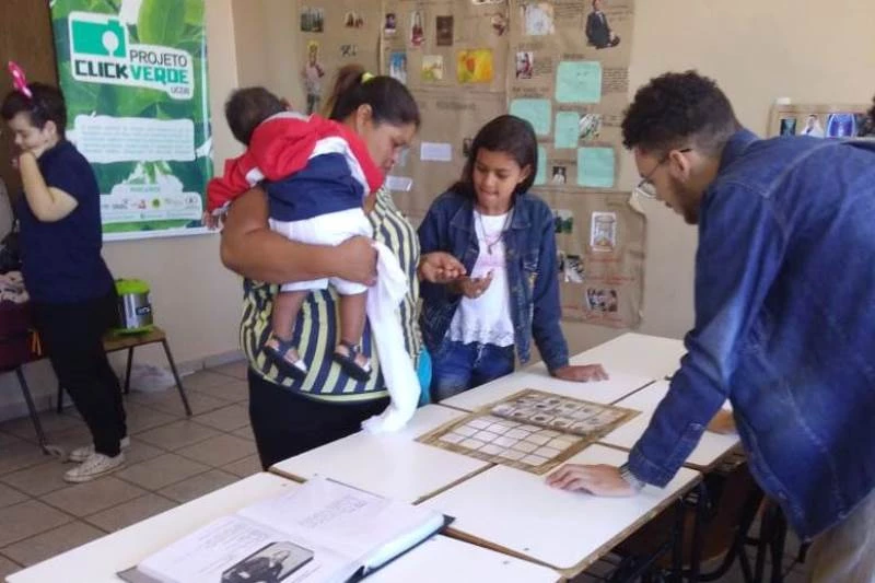 Em outra sala, os projetos Labhis e Click Verde dividiram espaço levando ao público um estúdio divertido de fotos e um quebra-cabeças com locais e objetos que são patrimônio cultural de Campo Grande, além de fotos da época de Dom Pedro II e moedas antigas do Brasil. Para as crianças, as brincadeiras também foram proporcionadas pelos extensionistas do Criança Ativa: elástico, corda, futebol de botão e desenhos para colorir.