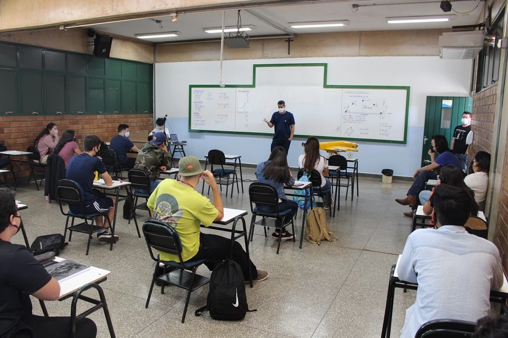 “Devido ao assunto que ministrava na disciplina de Física, aproveitei o momento para convidar os responsáveis pelos projetos de extensão da UCDB e de Pibic, voltados para as engenharias, para que apresentassem aos alunos”, destacou o professor Hillton Luiz Monteiro Junior.