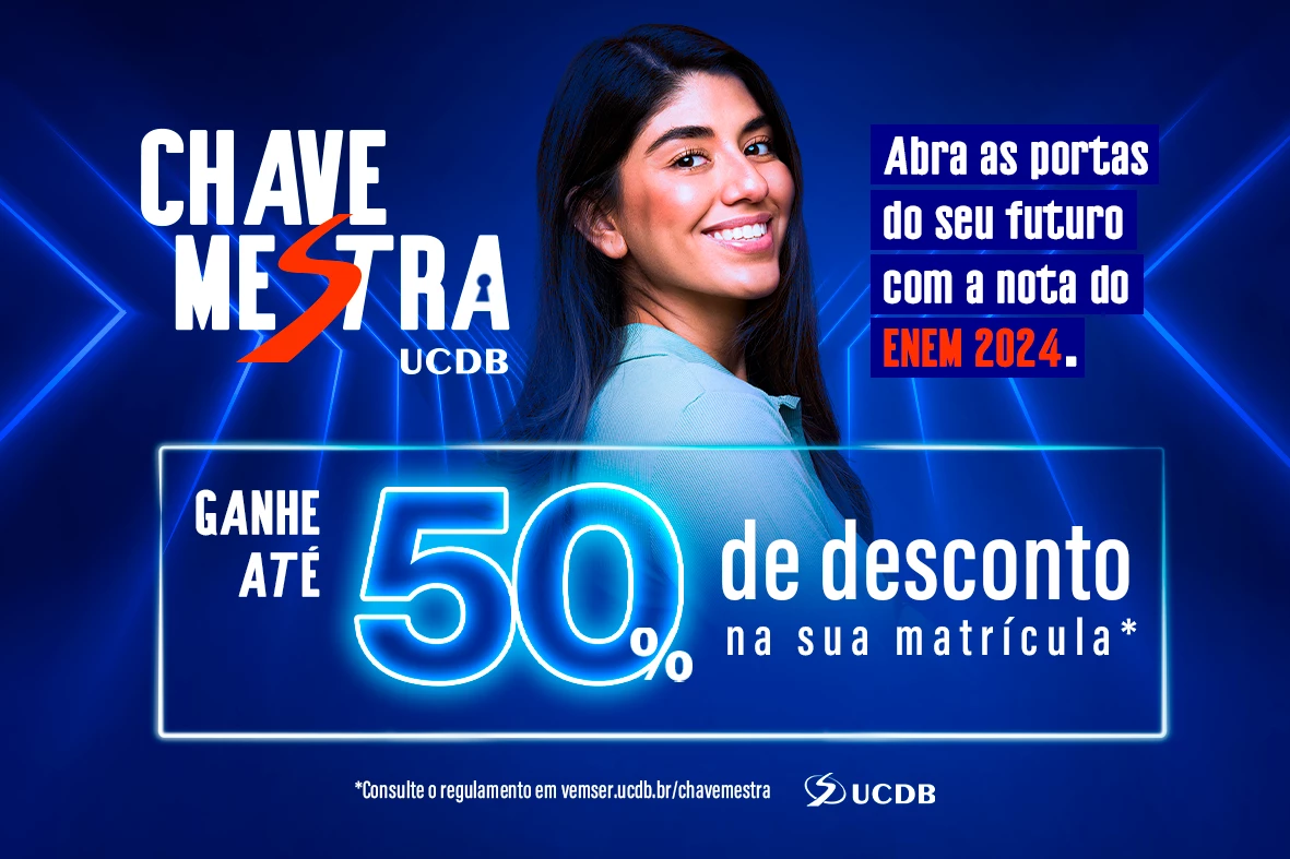 A nota do Exame Nacional do Ensino Médio (Enem) 2024 foi divulgada nesta semana e com ela os ingressantes têm até 50% de desconto na matrícula e até 20% de desconto nas mensalidades da Universidade Católica Dom Bosco (UCDB), além de prêmios exclusivos. Na promoção Chave Mestra, os futuros acadêmicos que se matricularem até o dia 13 de março, com exceção do curso de Odontologia, usam a nota obtida no Enem para definir a faixa de desconto e as vantagens que só a melhor universidade particular de Mato Grosso do Sul pode oferecer.