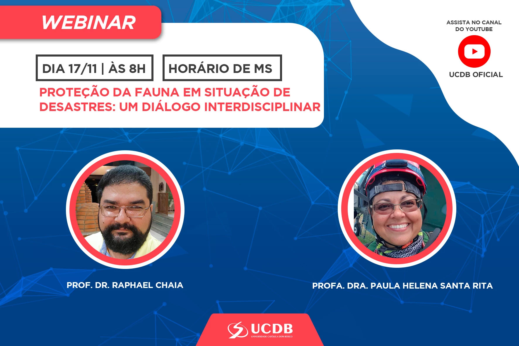 A Universidade Católica Dom Bosco (UCDB) realiza nesta terça-feira (17), às 8 horas, a webinar ‘Proteção da fauna em situação de desastres: um diálogo interdisciplinar’, destinada para acadêmicos dos cursos de Direito, Medicina Veterinária e Zootecnia, mestrandos, doutorandos, docentes, pesquisadores e comunidade em geral. A transmissão será feita pelo Youtube oficial da Católica.