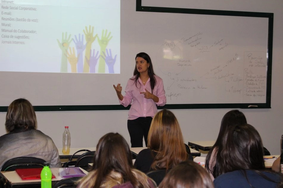 Alunos do 7º semestre de Psicologia da Universidade Católica Dom Bosco (UCDB) participaram de uma palestra com a psicóloga Milena de Mendonça Lemos, responsável pela gestão de pessoas na empresa Puket, na segunda-feira (24). A troca de conhecimentos entre a profissional e os acadêmicos fez parte da disciplina “Psicologia organizacional e do trabalho” que compõe a grade curricular do curso.