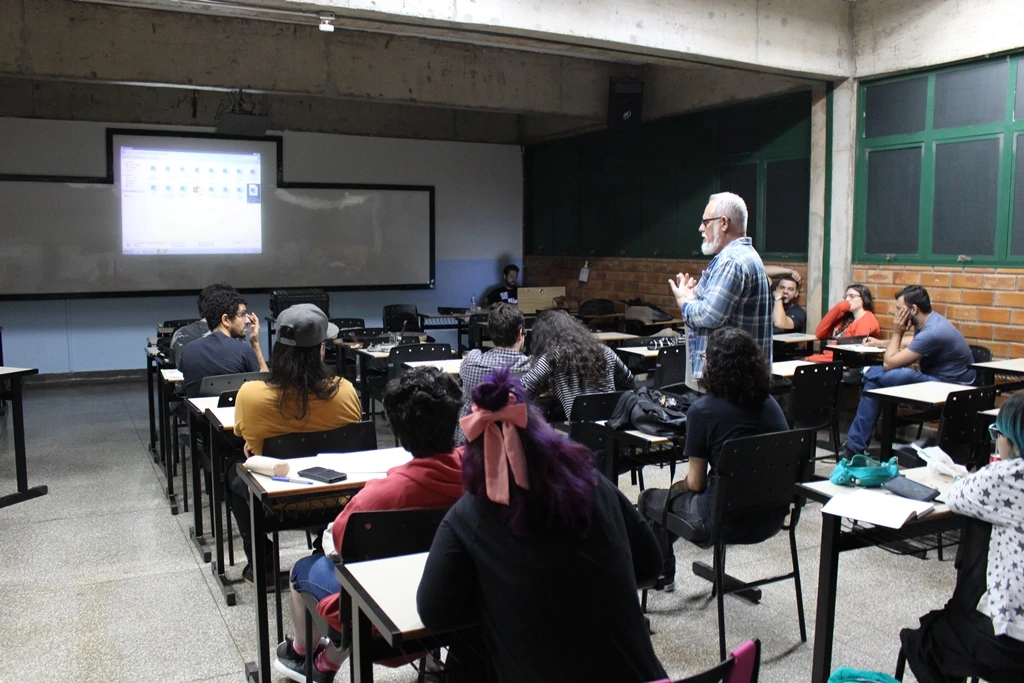 Voltado para os acadêmicos do curso de Design da Universidade Católica Dom Bosco (UCDB) foi realizado na quarta-feira (13), o Bate-papo Design ministrado pelo publicitário e, atualmente proprietário da Camalote Filmes — produtora de comerciais, institucionais, campanhas políticas, clipes e conteúdo para TV e internet —, Luís Andrade que abordou questões relacionadas ao audiovisual.