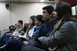 Dr. Àngel explicou aos alunos a pesquisa que está desenvolvendo, que tem como ideia central o controle dos produtos midiáticos propondo uma forma de controle de qualidade. Além disso, o palestrante abordou o excesso de conteúdos veiculados pela mídia, que muitas vezes “intoxicam” o telespectador por mostrar violência excessiva, entre outras coisas.