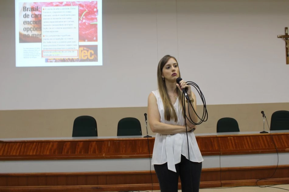 Acadêmicos do 6º semestre de Zootecnia e Medicina Veterinária da Universidade Católica Dom Bosco (UCDB) participaram, na sexta-feira (15), de uma palestra sobre qualidade de carne e ultrassonografia de carcaça proferida pela Dra. Marina de Nadai, professora da Universidade Federal de Mato Grosso do Sul (UFMS).