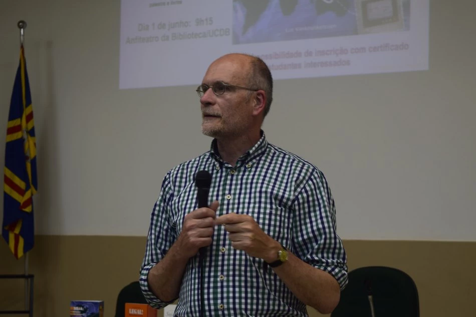 A palestra foi ministrada pelo escritor Luc Vankrunkelsven, que é natural da Bélgica e membro do Projeto Erasmus Mundus. Em sua palestra trouxe a plantação de eucalipto como exemplo e buscou a reflexão sobre a ocupação do cerrado pelo agronegócio.