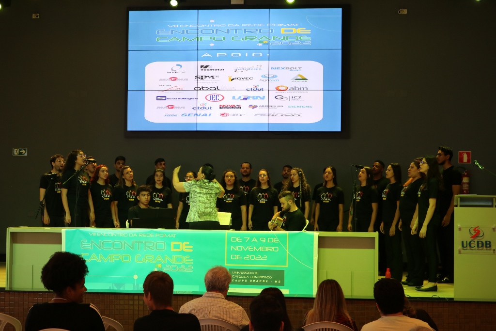 A VIII edição do Encontro da Rede PDImat - Encontro de Campo Grande 2022, foi aberta nesta segunda-feira (7), no Pátio UCDB, e contou com a participação do Reitor da Universidade, além da presidente do Conselho Regional de Engenharia e Agronomia de Mato Grosso do Sul (Crea-MS), Vania Abreu de Mello, do diretor executivo da Associação Brasileira do Aço Inoxidável, Paulo Ricardo de Andrade, e do coordenador do comitê executivo da rede de engenheiros, professor Sérgio Rodrigues Barra, compuseram a mesa. O evento, que é sediado na Católica com transmissão pela internet e vai até o dia 9, contou na abertura com apresentação do Coral da UCDB.