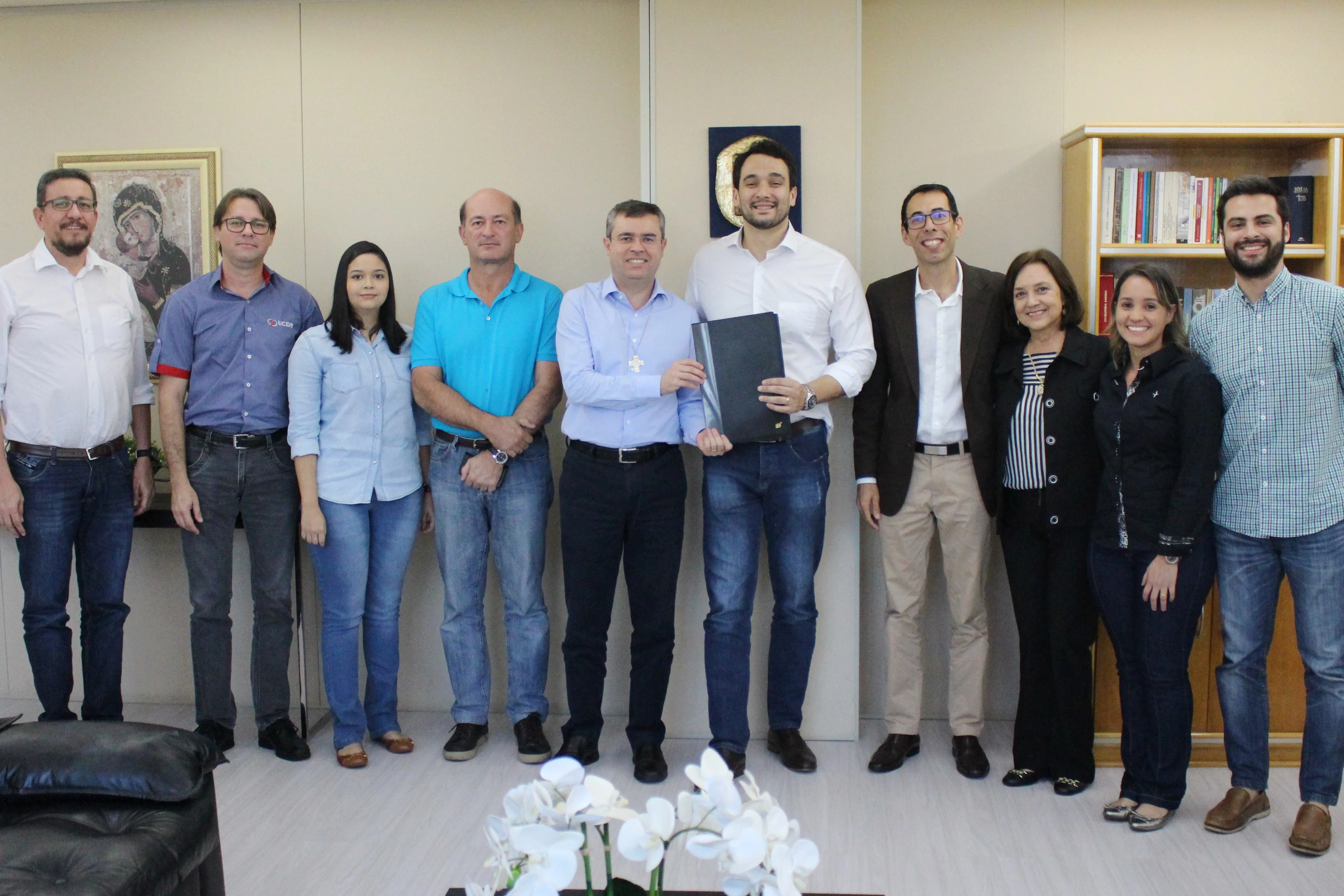 Na tarde desta sexta-feira (22), o Reitor da Universidade Católica Dom Bosco (UCDB), Pe. Ricardo Carlos, entregou ao superintendente regional do Departamento Nacional de Infraestrutura de Transportes (DNIT), Thiago Carim Bucker, um estudo desenvolvido por seis pesquisadores da Instituição que analisou aspectos econômicos e ambientais dos 14 municípios brasileiros que irão integrar a Rota Bioceânica — uma conexão viária entre o Centro-Oeste do Brasil e o Pacífico que irá reduzir o tempo de trânsito e o custo do serviço de transporte de produtos.