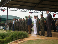 Pe. Marinoni recebeu o diploma do General de Divisão Marcelo Flávio Oliveira Aguiar, comandante da 9º Região Militar e foi cumprimentado pelo comandante do CMO, General Renato Joaquim Ferrarezi. “A homenagem não é para mim, mas para a UCDB, que mantém parceria há muito tempo com o Exército. Temos um trabalho em conjunto de integração, que permite que as atividades dos militares seja reconhecidas pela sociedade civil”, comentou o Reitor, referindo-se aos programas produzidos pelo Laboratório de Comunicação Social (Labcom).