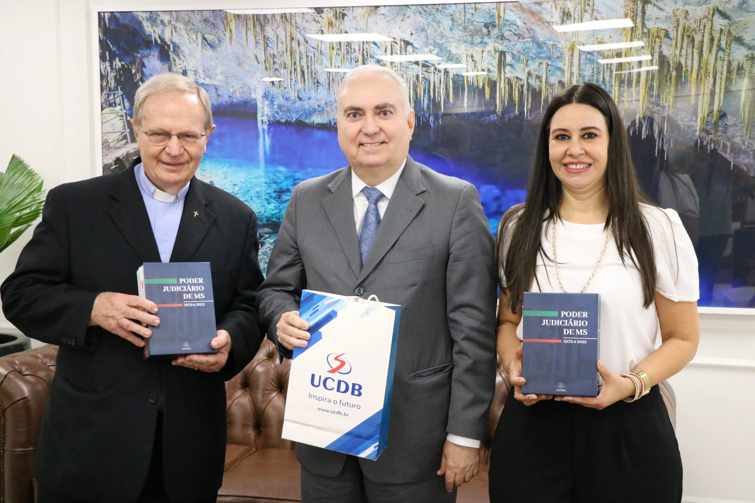 O presidente do TJMS tomou posse no dia 1º de fevereiro deste ano e presenteou o Reitor com um exemplar da trilogia literária de resgate da história da Justiça no Estado.