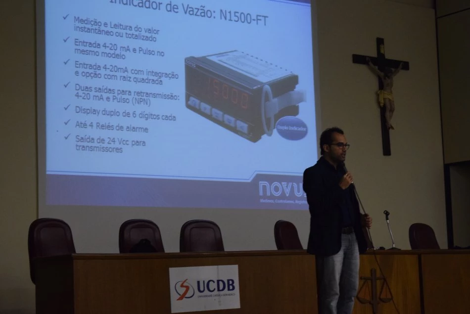A Universidade Católica Dom Bosco (UCDB), por meio dos cursos de Engenharia Mecânica e Engenharia de Controle e Automação, realizou, na sexta-feira (23), palestra com o representante da empresa Novus Produtos Eletrônicos, Everson Pinheiro.