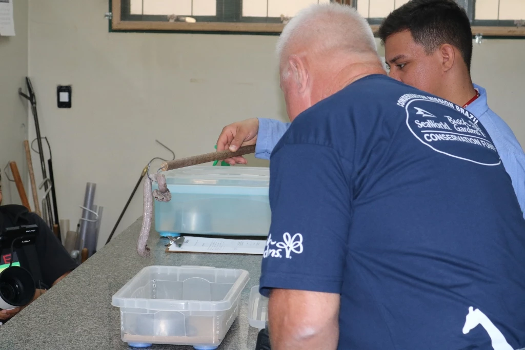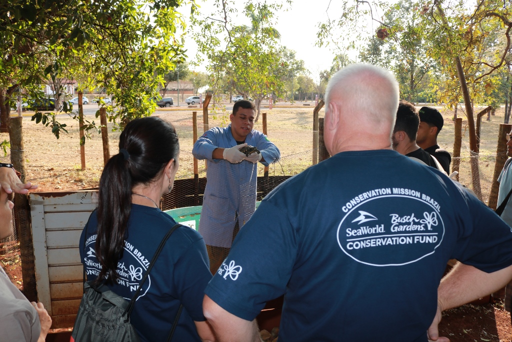O diretor do Fundo de Conservação Sea Bush Gardens, Rob Yordi, veio conhecer o trabalho do Biotério e de outros espaços no Brasil. “Ele trabalha para o Sea World há mais de 30 anos e sempre teve um interesse muito grande em conservação. Então, surgiu em 2003 o Sea World and Bush Gardens Conservation Fundation. São pessoas que trabalham para a nossa empresa e que voluntariam o seu tempo para coordenar fundos para sejam distribuídos para projetos de conservação, de educação ambiental, de resgate no mundo todo. E nós temos vários projetos aqui no Brasil”, destacou a diretora de sustentabilidade de espécies, a médica veterinária, Gisele Monteiro, que é brasileira e vive em Orlando.