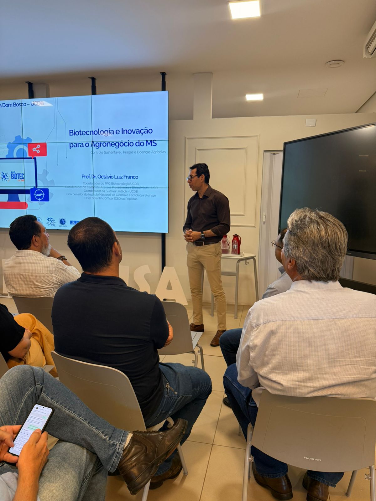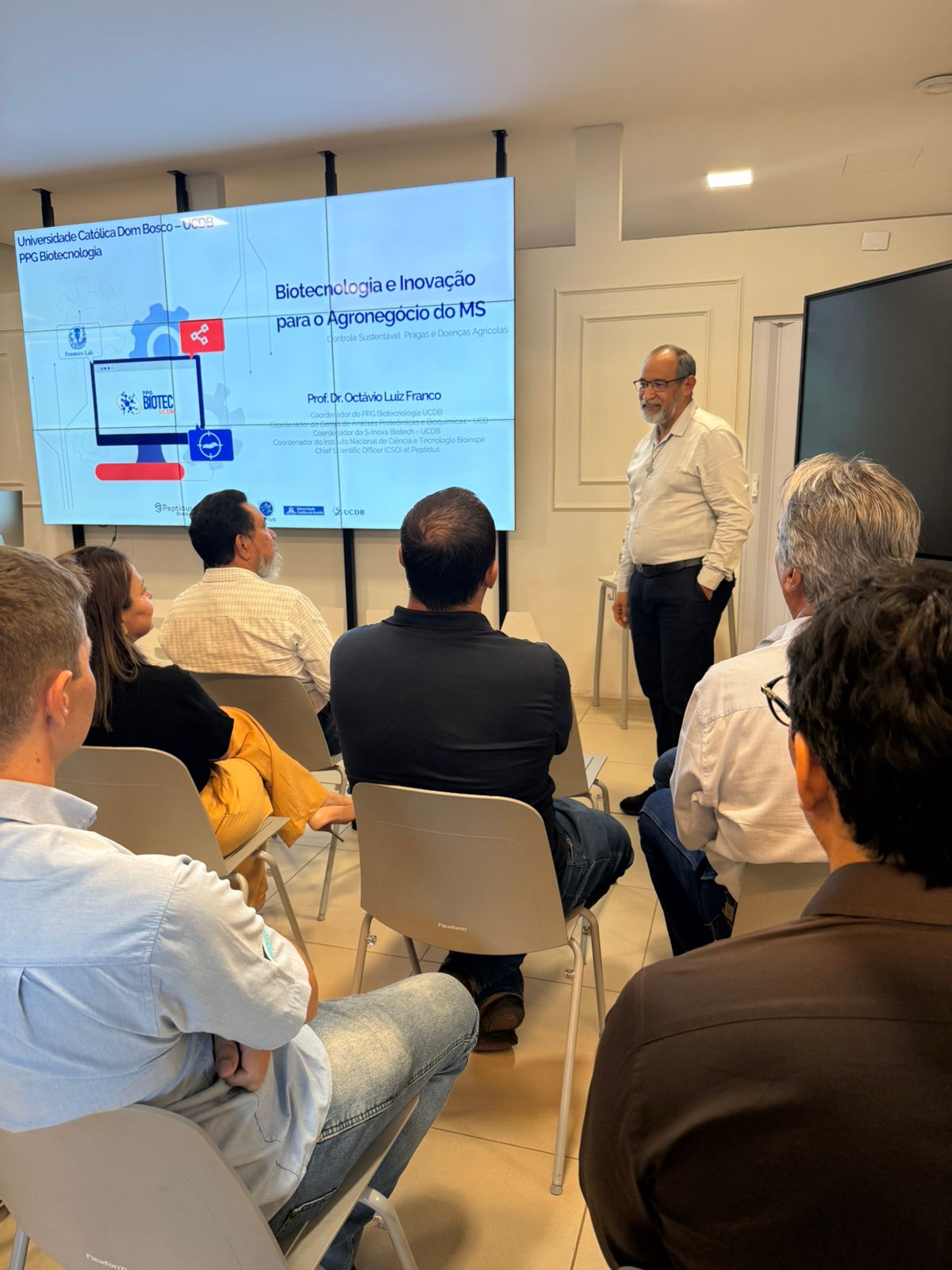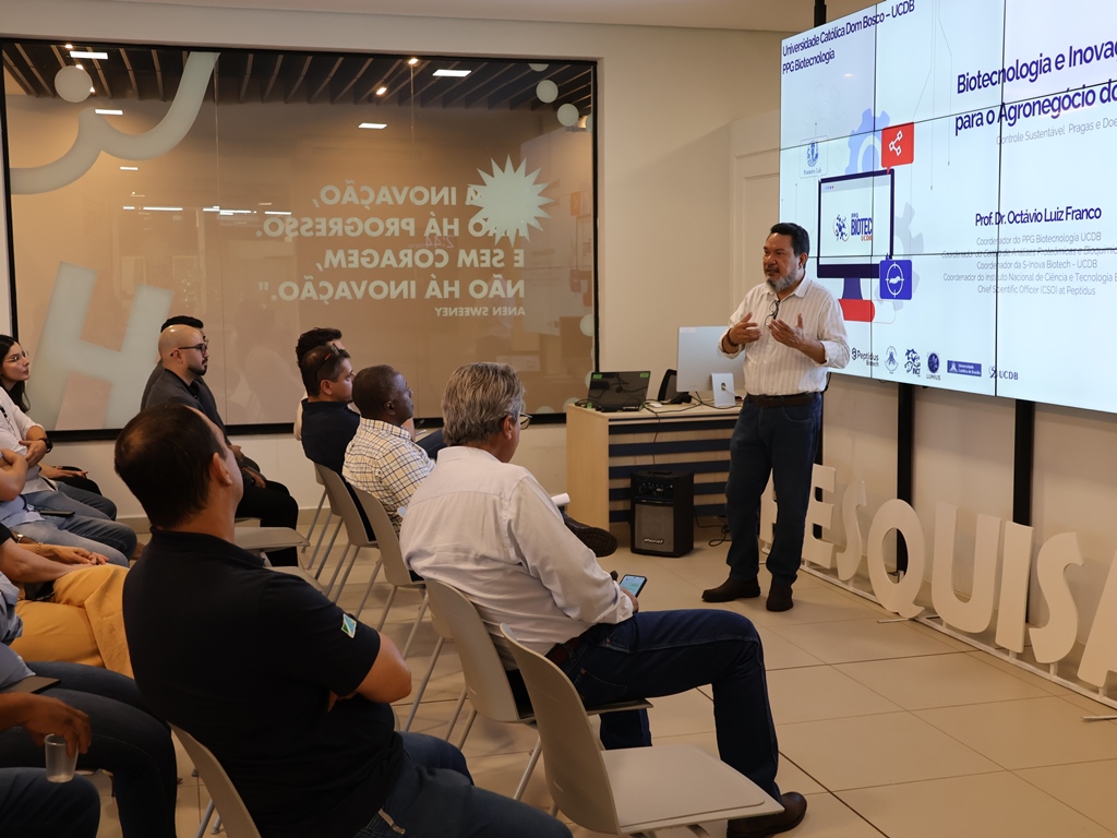 A reunião foi organizada pelo Programa de Mestrado e Doutorado em Biotecnologia, coordenado pelo professor Dr. Octávio Luiz Franco. A primeira parte aconteceu no Inova Hub, localizado no Pátio UCDB, com as apresentações da Semadesc e das principais pesquisas desenvolvidas na Católica. Em seguida, o grupo visitou os laboratórios de imunologia, farmacologia molecular, controle biotecnológico de pragas e microbiologia molecular.
