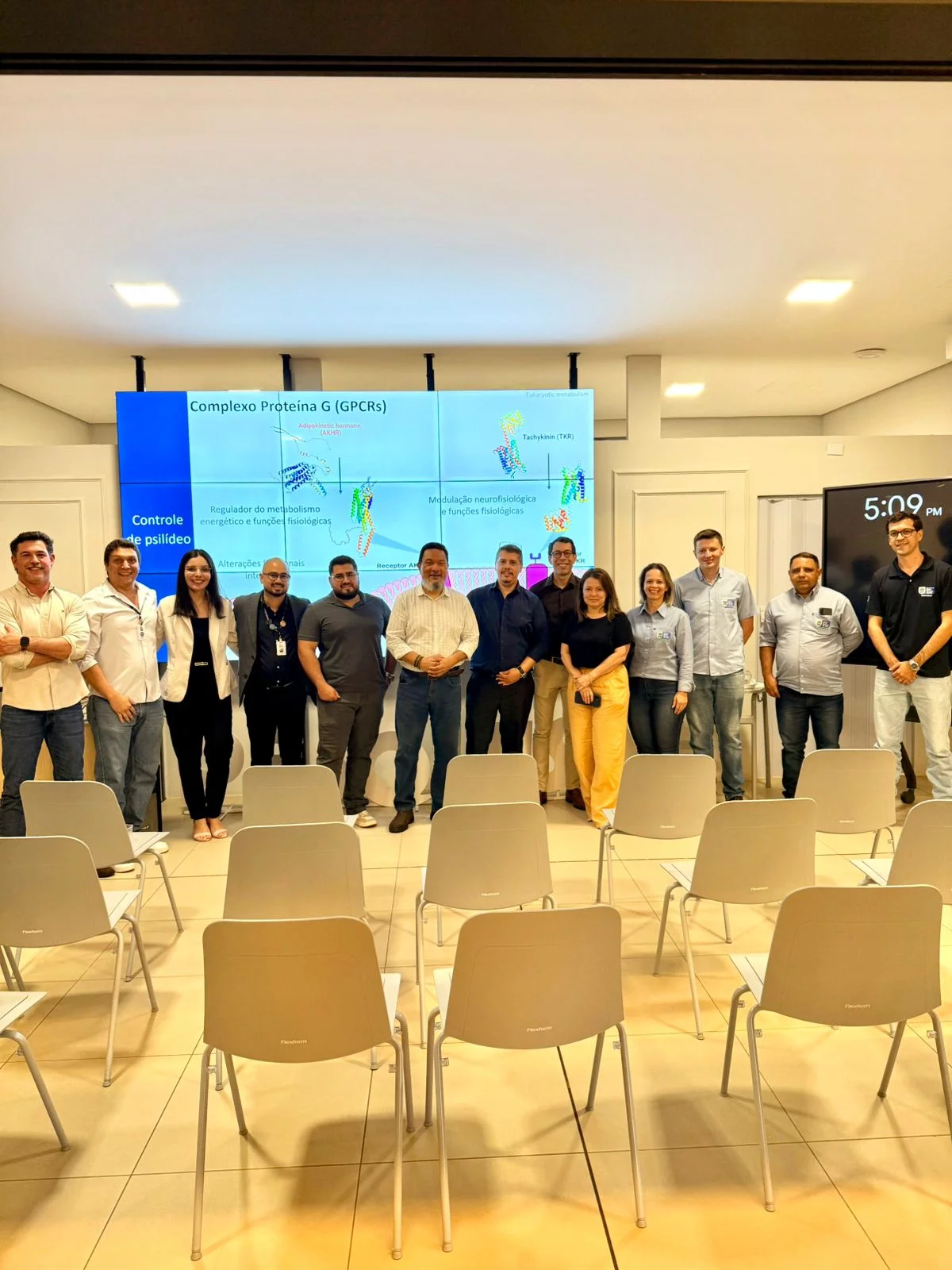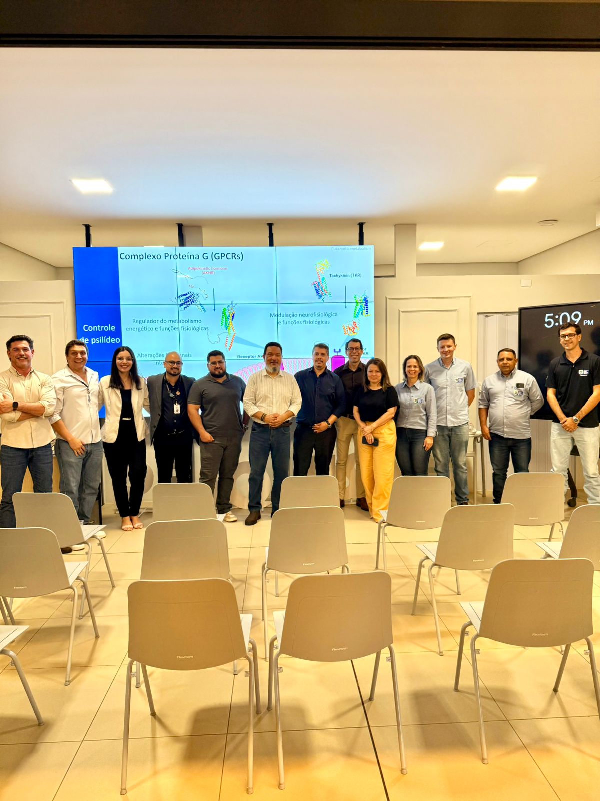 “O objetivo da reunião é elaborar um programa estratégico integrado de inovação em bioinsumos e controle biotecnológico de pragas e doenças agrícolas, alinhado à agenda de desenvolvimento do Estado”, disseram os organizadores. O Reitor da UCDB, Pe. Hermenegildo Conceição Silva, e o Pró-Reitor de Pesquisa e Pós-graduação, Dr. Michel Constantino, participaram do encontro.