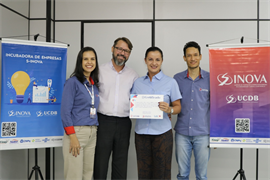 Com nove anos de atuação na Universidade Católica Dom Bosco (UCDB), a incubadora de empresas ligada à Agência de Inovação e Empreendedorismo S-Inova realizou na última quinta-feira (15) a cerimônia de graduação das empresas que passaram pelo processo de incubação. O evento contou com a presença do Reitor da UCDB, Pe. José Marinoni, do Pró-Reitor de Pesquisa e Pós-graduação, Cristiano Marcelo Espínola Carvalho, e da coordenadora da S-Inova, Andressa Tognon.