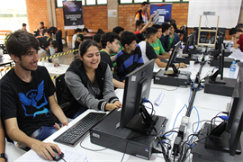 O curso de Tecnologia em Análise e Desenvolvimento de Sistema, em parceria com o projeto de extensão Ensino de Programação e Robótica/OBI/OBR, da Universidade Católica Dom Bosco (UCDB) realizou, no segundo dia do V Congresso Internacional de Ensino, Pesquisa e Extensão da UCDB - Saberes em Ação, uma competição de programação, no qual dez equipes tinham que resolver problemas e submeterem a um sistema que julgava automaticamente as respostas.