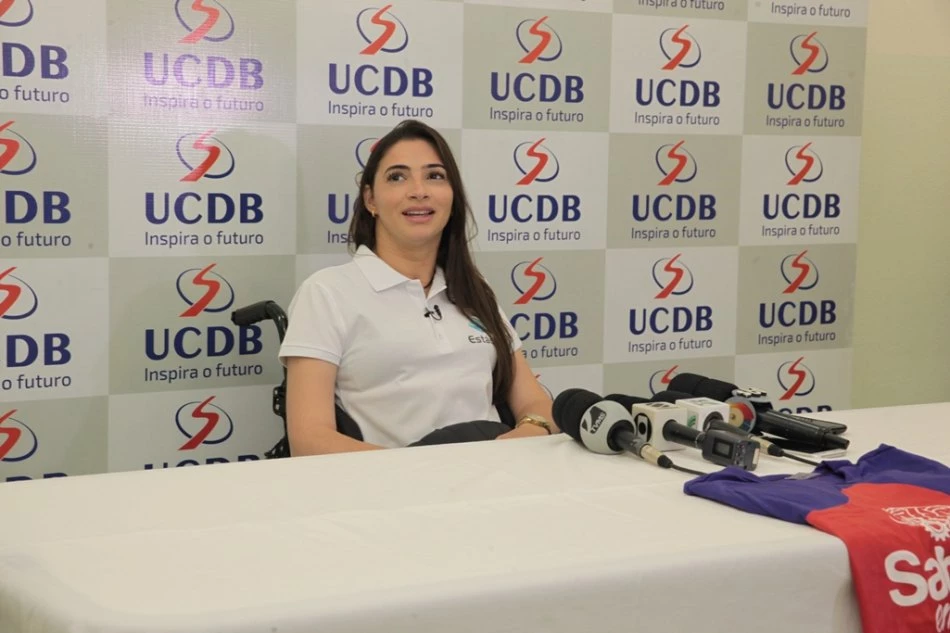 A ex-ginasta Laís Souza já está em Campo Grande, onde logo mais, às 19h, profere a palestra de abertura do IV Congresso Saberes em Ação, da Universidade Católica Dom Bosco. Hoje pela manhã, Laís participou de uma coletiva de imprensa e conheceu a estrutura da Clínica-Escola, em especial dois projetos de extensão, o Vida Nova e Cogni-Ação.