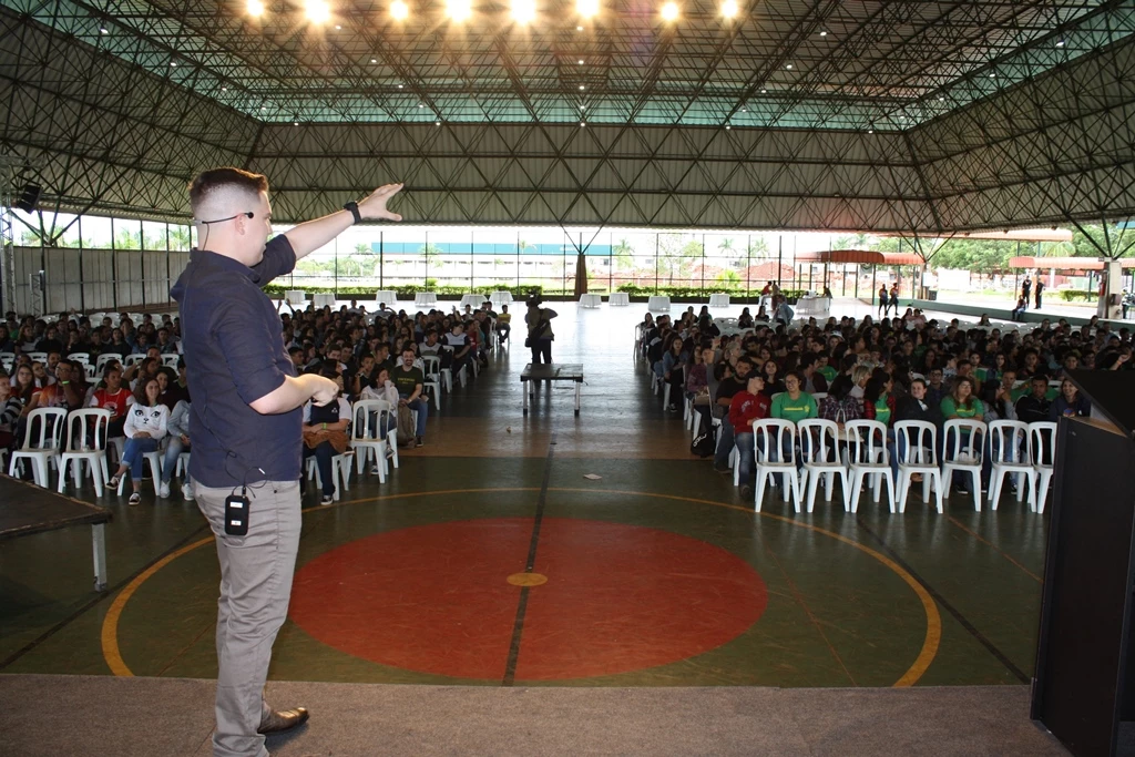 “Procuro utilizar imagens, gifs, pinturas e muita música. As paródias fazem sucesso e é uma forma dos jovens fixarem o conteúdo”, explicou o docente. Após a palestra, os alunos foram visitar os diversos espaços do Saberes em Ação, incluindo a Mostra de Produtos e a exposição de banners do ensino médio.