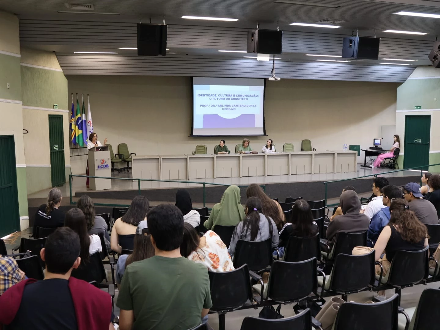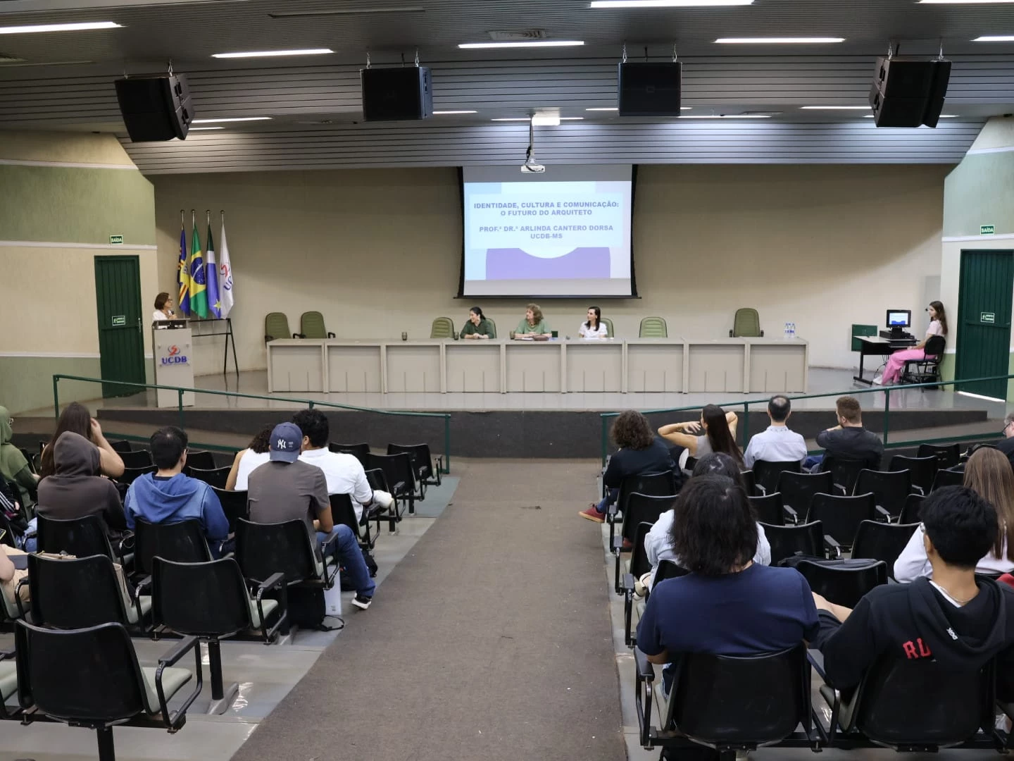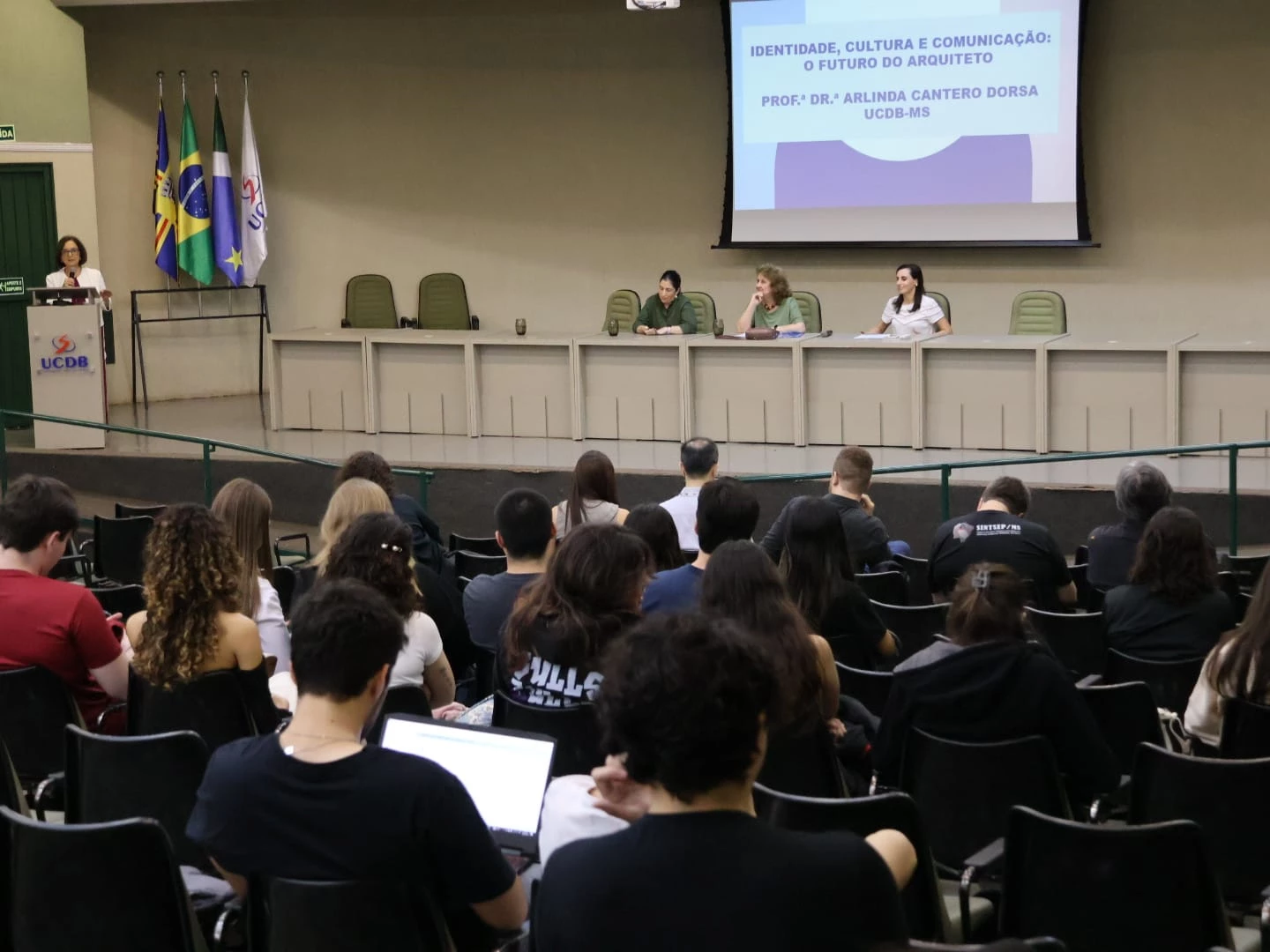 A Semana Acadêmica de Arquitetura e Urbanismo 2025 da Universidade Católica Dom Bosco (UCDB) iniciou nesta segunda-feira (19) e segue até a próxima quarta-feira (21). A palestra de abertura ‘Um olhar sobre o Espaço Regional’, realizada no auditório do bloco B, foi ministrada por Cleonice Alexandre Le Bourlegat, Arlinda Cantero Dorsa e Kátia Rosa Macuglia Didone.