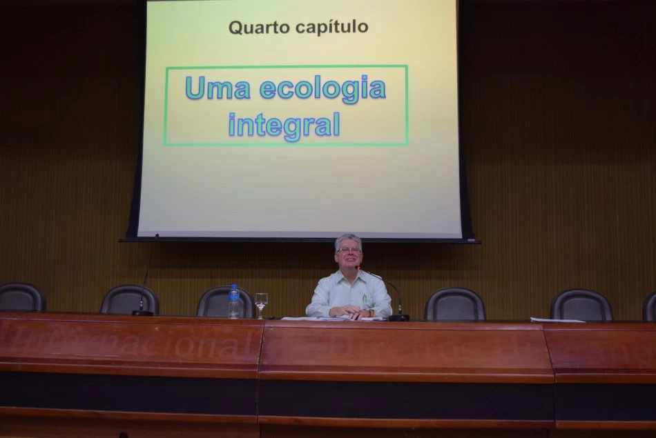 Durante a palestra, Frei Nilo fez referência a encíclica do Papa Francisco “Laudato Si”, na qual o líder católico critica o desenvolvimento irresponsável e faz um apelo para que os países se unam e desenvolvam ações para combater a degradação ambiental e as alterações climáticas. "A preocupação ecológica que o Papa tem demostrado, expõe que a natureza tem ciclos e limites, e o ser humano tem que respeitar isso como um elo da criação. Nossa espécie deve sim intervir, mas ao cuidar e preservar a natureza”, pontuou Frei Nilo.