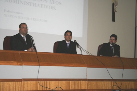 Ministrada pelo procurador do Estado Nilton Kiysohi Kurachi, a palestra “O princípio da jurisdicência nos atos de administração” foi a primeira da noite seguida pela apresentação da promotora de Justiça Jiskia Sandri Trentin, que abordou o tema “A lei do crime organizado e seus meios operacionais de investigação e prova”.