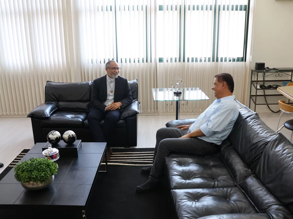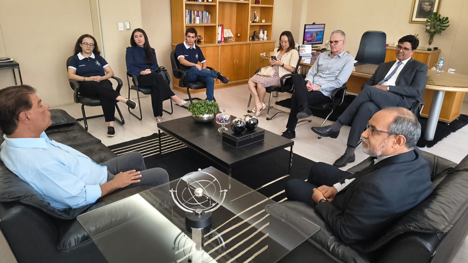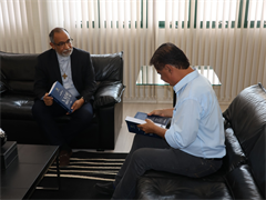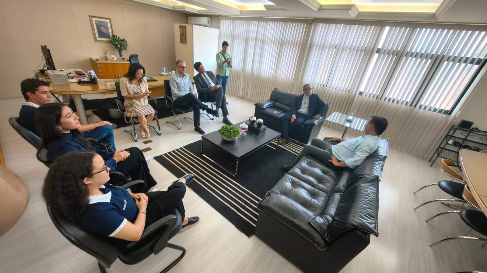 O senador foi recebido na reitoria pelo Reitor da UCDB, Padre Hermenegildo Conceição Silva, pelo Pró-Reitor de Graduação, Cléber Fagundes Ramos, pelo coordenador do curso de Direito, Luiz André de Carvalho Macena, além dos representantes do Daclobe: Maria Letícia Costa (presidente), Beatriz Toma (vice-presidente) e Rafael Barbosa Nery (tesoureiro).