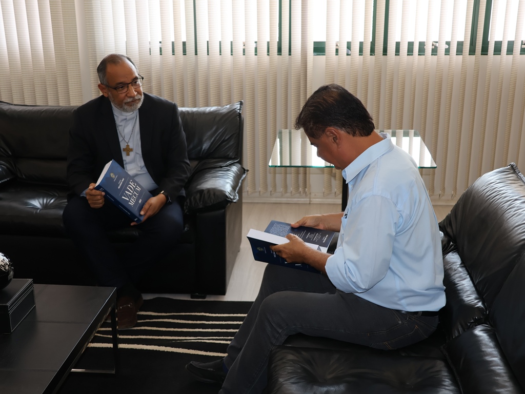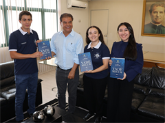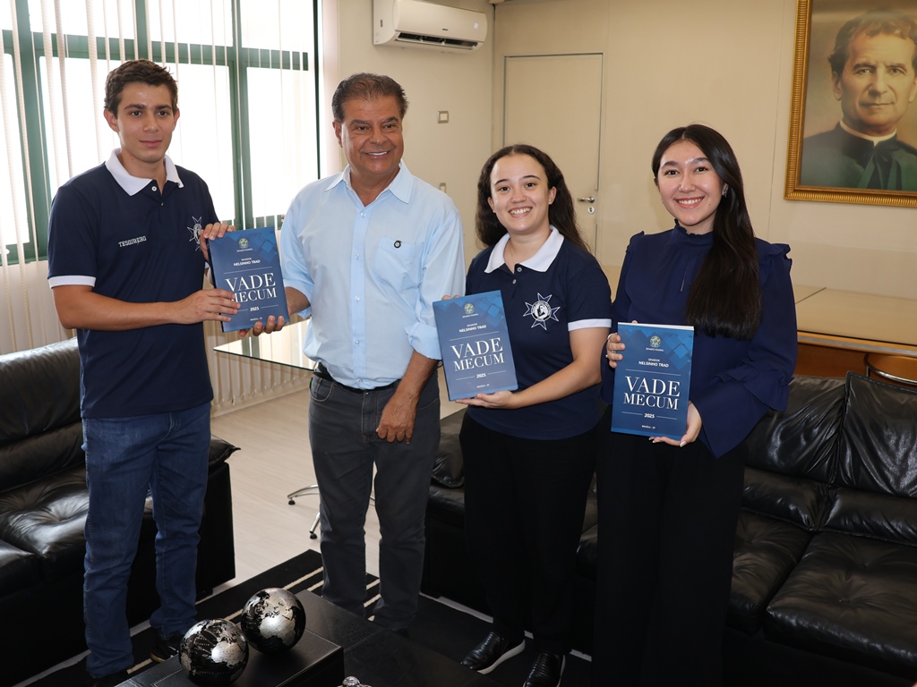A Universidade Católica Dom Bosco (UCDB) recebeu, nesta terça-feira (31), a visita do senador Nelsinho Trad, que realizou a doação de 240 exemplares do livro Vade Mecum ao Diretório Acadêmico Clóvis Beviláqua (Daclobe), do curso de Direito. Os exemplares serão distribuídos aos calouros inscritos na solicitação do diretório.