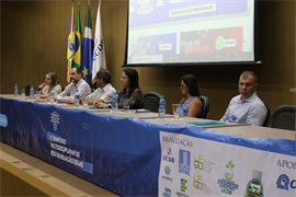 Empreendedorismo e Inovação na pesquisa foi o tema da mesa-redonda de abertura, com a moderação do professor Dr. Ludovico Migliolo (UCDB) e contou com a participação dos professores Dr. Patrik Luiz Pastori (UFGD), Dr. Michel Angelo Constantino de Oliveira (UCDB) e engenheiro mecatrônico Odilon Pereira de Moura (Sesi Fiems). “Tivemos a oportunidade de sentar com pessoas especializadas e também fomentar isso no Estado, fortalecendo ainda mais o lado empreendedor que é uma saída para muitos de nós”, enfatizou o professor Ludovico.