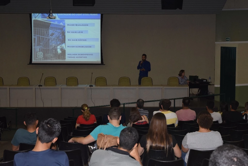 O sistema construtivo Light Steel Frame (estrutura de aço leve), bastante conhecido nos países mais desenvolvidos, está há alguns anos no Brasil presente na construção civil em diversos empreendimentos, como comércio, residências, centro de convenções, entre outros. O tema foi abordado nesta quinta-feira (15), para acadêmicos dos cursos de Engenharia Civil e Arquitetura, em palestra ministrada pelo empresário, Lincoln Tiickmantel, que também é o Engenheiro Civil.
