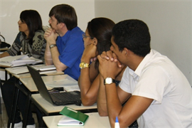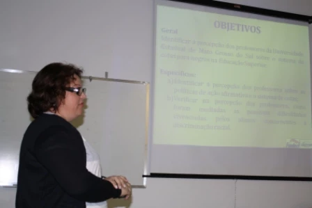 Pela manhã, a mestrando Daisy Ribas Emerich defendeu a dissertação “A percepção dos professores sobre o Sistema de Cotas para Negros da Universidade Estadual de Mato Grosso do Sul – Curso de Pedagogia de Dourados (2004-2008)”. A banca de avaliação foi composta pelas professoras da UCDB, Dra. Mariluce Bittar – orientadora do trabalho – e Dra. Tereza Cestari, além da convidada, Dr. Maria José Cordeiro.