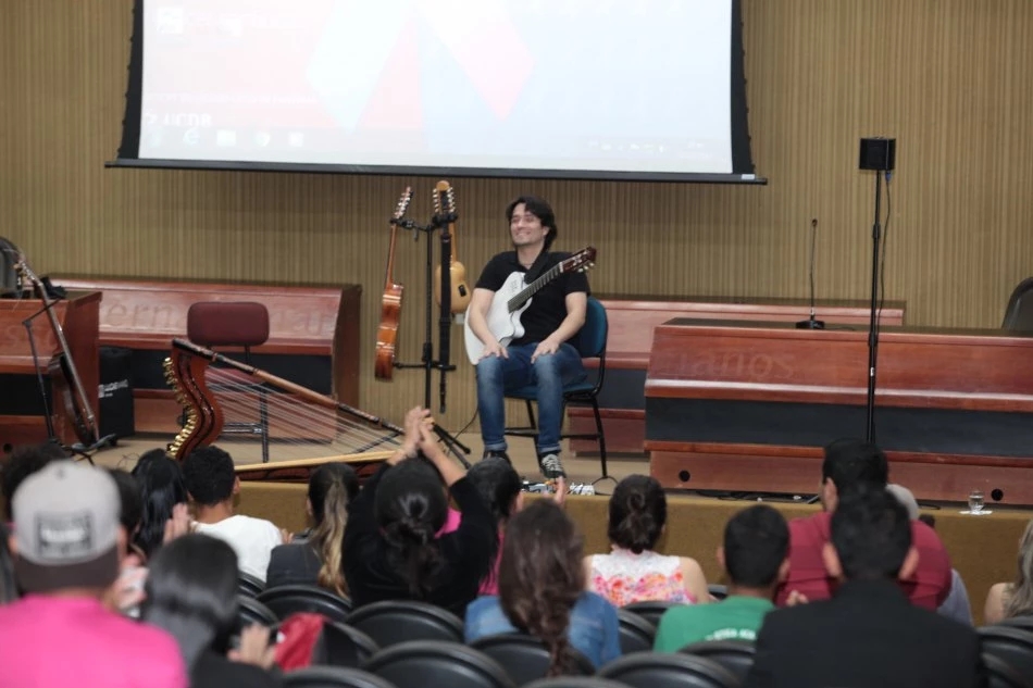 Com ritmos sul-mato-grossenses, peruanos e argentinos, o instrumentista Marcelo Loureiro proporcionou para o público uma viagem musical pela América Latina. A apresentação, realizada na noite desta terça-feira (31) no anfiteatro do bloco A da Universidade Católica Dom Bosco, compôs a “Noite cultural em apoio ao tratamento das pessoas com câncer”.
