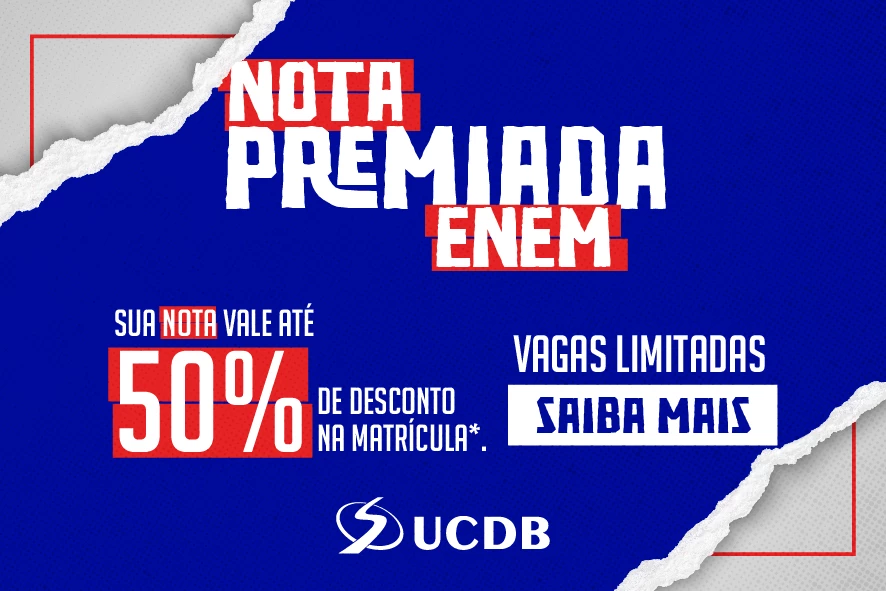 A nota do Exame Nacional do Ensino Médio (Enem) foi divulgada ontem (9) e os estudantes podem aproveitar a oportunidade para se matricular na Universidade Católica Dom Bosco (UCDB) com até 50% de desconto e pagar até 20% a menos nas mensalidades. A promoção Nota Premiada é válida para quem participou do Enem entre 2012 e 2022 e ingressará no 1º semestre. O prazo para adesão é até 28 de fevereiro.
