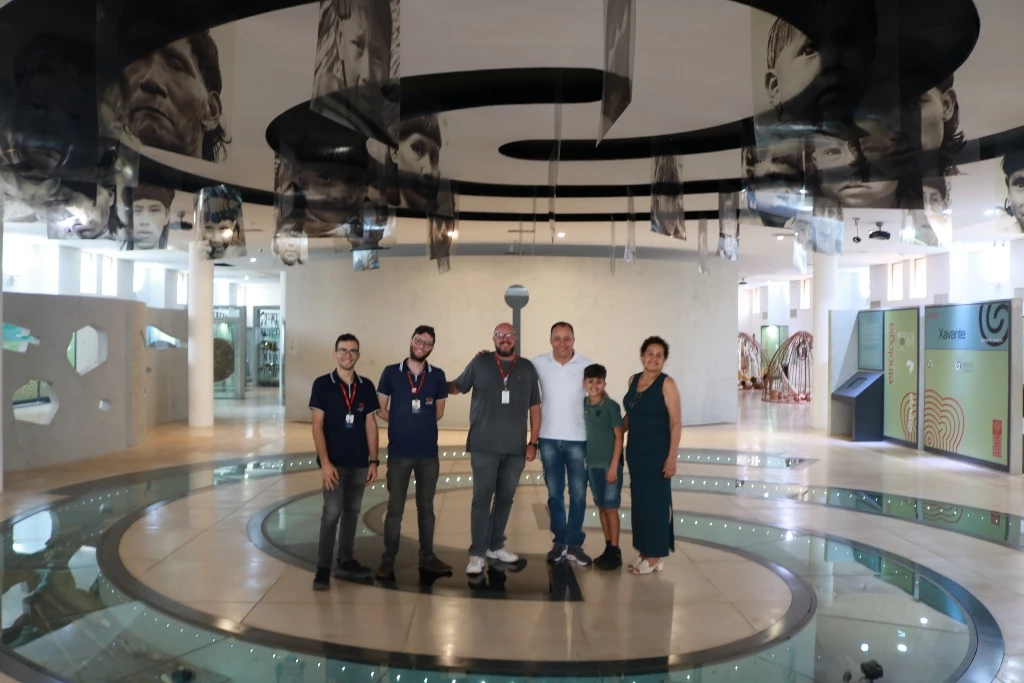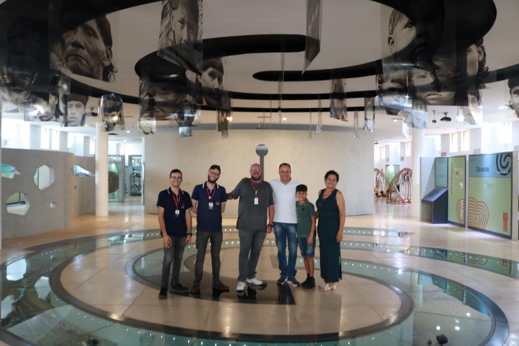 O superintendente de assuntos indígenas da Casa Civil de Mato Grosso, Agnaldo Santos, visitou nesta quarta-feira (12) o Museu das Culturas Dom Bosco, administrado pela Universidade Católica Dom Bosco (UCDB). com intuito de buscar inspiração para construir um espaço igual no Estado vizinho. Ele, que estava acompanhado do filho e da sogra, foi recebido pelo coordenador do Museu, Dirceu Mauricio van Lonkhuijzen.