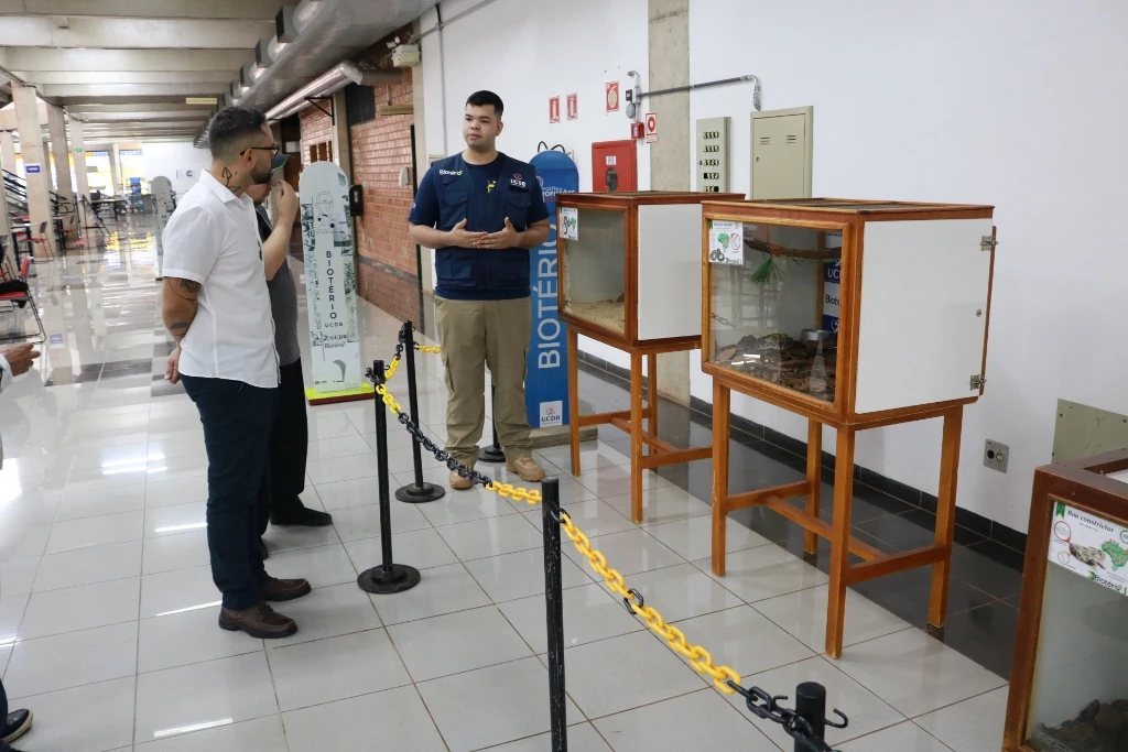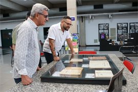 O superintendente do Instituto do Patrimônio Histórico e Artístico Nacional (Iphan) em Mato Grosso do Sul, João Henrique dos Santos, esteve nesta manhã (17) visitando a exposição em comemoração aos 25 anos da Biblioteca Félix Zavattaro na Universidade Católica Dom Bosco (UCDB), e foi acompanhado pelo coordenador da área de Arte e Cultura da Católica, professor Roberto Figueiredo.