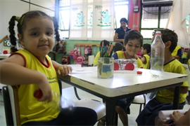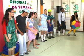 Encenação da série “Turma do Chaves” feita por acadêmicos de Educação Física da Universidade Católica Dom Bosco (UCDB) animou o segundo dia de programação da Semana da Criança, realizada pelo Centro de Educação Infantil São Domingos Sávio (CEI/UCDB). No período da manhã, os alunos participaram da oficina de reciclagem com garrafa Pet.