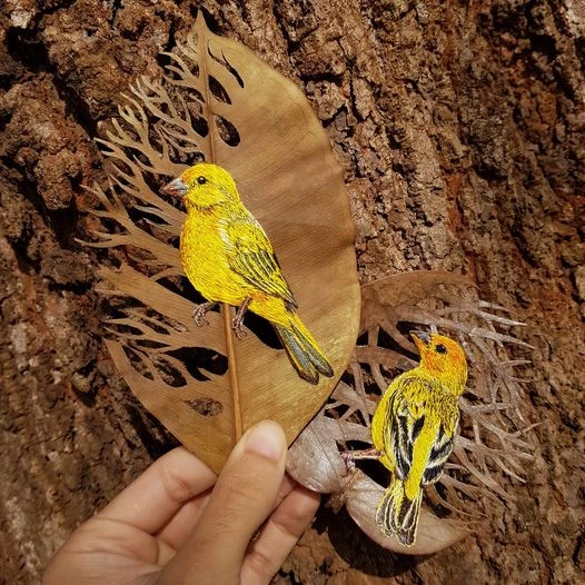 “Desde criança sempre gostei de desenhar. Sempre tive esse pé na arte, mas não tinha referências de artistas na família e nem me imaginava trabalhar e ganhar dinheiro com isso. Atualmente comecei a testar bordados em folhas secas e em outras superfícies", disse o artista, que está na área há quase 10 anos, utilizando outras técnicas, como a pintura.