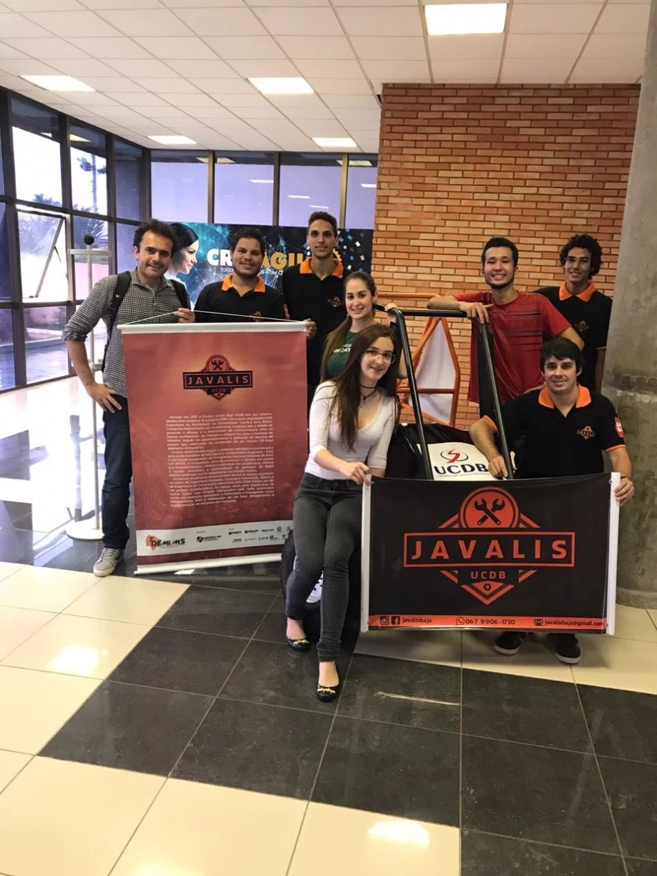 Além disso, apresentaram também outro projeto de PIBIC nomeado Baja SAE Brasil. É um evento que ocorre desde 1994, sendo uma competição derivada da Baja SAE. Esta competição tem como objetivo incentivar estudantes de engenharia a aplicar os conceitos adquiridos em sala de aula visando a preparação do estudante para o mercado de trabalho. A intenção da competição é simular casos reais de execução de projetos de engenharia para um veículo off-road. A equipe da UCDB tem o nome de Javalis UCDB e iniciou seu projeto também em agosto de 2015.