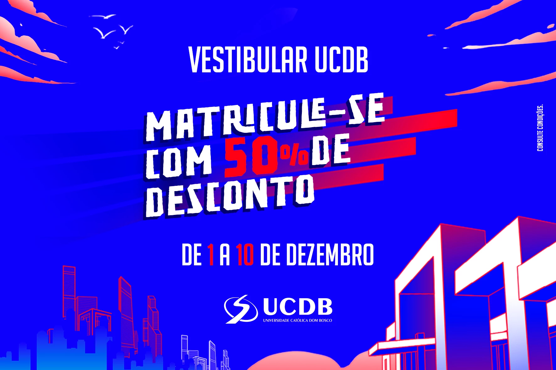 Termina neste sábado (10) o prazo para garantir 50% de desconto na matrícula para os aprovados no Vestibular UCDB 2023. As provas do vestibular, com concorrência de bolsas, foram realizadas nos dias 26 e 27 de novembro, e o resultado pode ser conferido aqui. Quem optar por ingressar utilizando as notas do Enem também pode aproveitar e garantir o desconto.