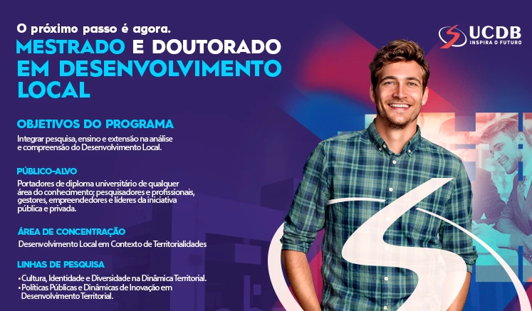 Termina nesta sexta-feira (31), o prazo de inscrição para aluno especial do programa de Pós-Graduação Stricto Sensu em Desenvolvimento Local da Universidade Católica Dom Bosco (UCDB), que poderá ser feita unicamente pela internet por meio do endereço eletrônico da ppgdl@ucdb.br.