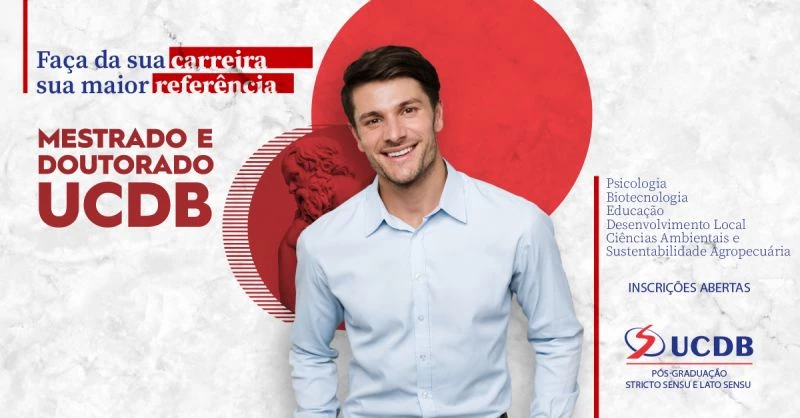 Terminam nesta terça-feira (16) o período de inscrições para os cinco Programas de Pós-Graduação Stricto Sensu da Universidade Católica Dom Bosco (UCDB) para quem pretende fazer mestrado ou doutorado em 2022. O interessado pode optar entre cinco áreas do conhecimento — Biotecnologia, Ciências Ambientais e Sustentabilidade Agropecuária, Educação, Desenvolvimento Local e Psicologia. Para participar do processo seletivo referente aos cursos de mestrado e doutorado, o candidato deve se inscrever clicando aqui. O doutorado em Ciências Ambientais e Sustentabilidade Agropecuária é de fluxo contínuo.
