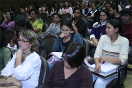 “A intenção é aprofundar a temática e fomentar um pouco disso em cada um de nós”, iniciou a coordenadora da mesa, Salette Marinho. Em seguida, a professora Cleonice Le Bourlegat falou sobre a conectividade dada pelo mundo em rede. Segundo ela, “essa nova condição comunicativa transformou o mundo em um macrossistema de alta complexidade, com o predomínio da fluidez com deslocamento acelerado da informação, bens e pessoas”.