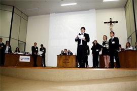 Os participantes são alunos do 3º semestre e a atividade faz parte da disciplina Redação e Linguagem Forense, ministrada pela professora Arlinda Cantero Dorsa. O Reitor da Instituição, Pe. José Marinoni, e a coordenadora adjunta do curso de Direito, Elaine Cler, parabenizaram os acadêmicos por mais uma edição do evento, que já se tornou tradição. “Aproveitem momentos como este, em que se alia a teoria e a prática, para enriquecer a formação acadêmica”, enfatizou o Reitor. Já a professora Elaine destacou a importância do exercício da oratória e da argumentação para os futuros advogados.