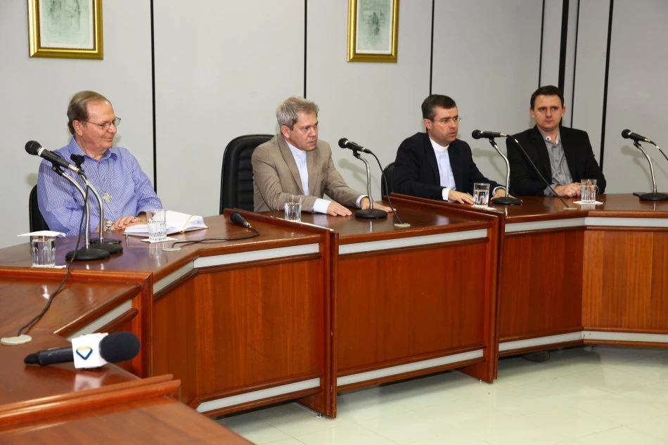 Também participaram da entrevista o Chanceler da Universidade e presidente da Missão Salesiana de Mato Grosso, Pe. Gildásio Mendes dos Santos, o próximo Pró-Reitor de Administração, Ir. Herivelton Breitenbach, e o atual Reitor, Pe. José Marinoni, que deixa a Instituição depois de mais de 22 anos de dedicação e que assumirá o desafio de trabalhar com as instituições salesianas de ensino superior no Brasil, pela Cisbrasil, em Brasília (DF). Outra mudança no conselho de Reitoria é a chegada do Diácono João Ortiz como Pró-Reitor de Pastoral da UCDB.