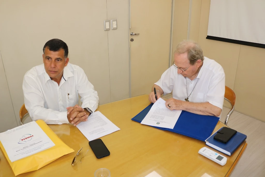 A Universidade Católica Dom Bosco (UCDB), por meio do Programa de Pós-Graduação — Mestrado e Doutorado em Ciências Ambientais e Sustentabilidade Agropecuária (PPGCASA) e da Agência de Inovação e Empreendedorismo (S-Inova), celebrou, nesta sexta-feira (25), acordo de cooperação técnica com a Fundação Nacional de Saúde (Funasa) para a implantação do Plano de Segurança da Água (PSA). O acordo foi assinado pelo Reitor da Católica, Pe. José Marinoni, e pelo superintendente Regional da Fundação, Jair Leite.