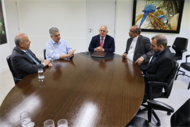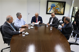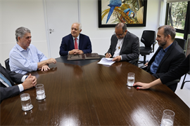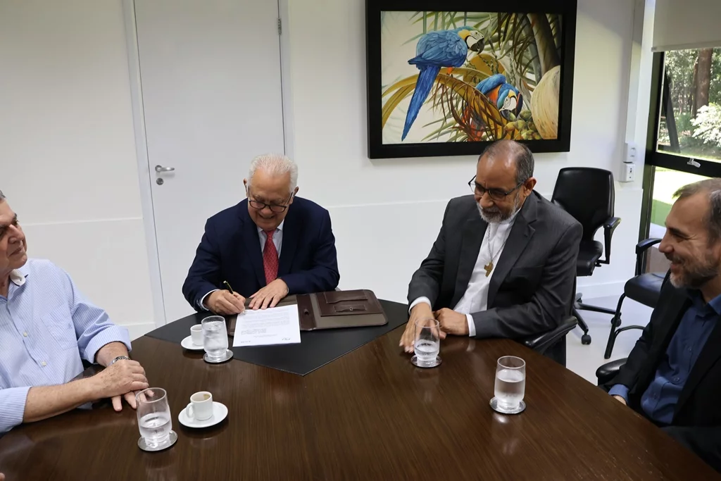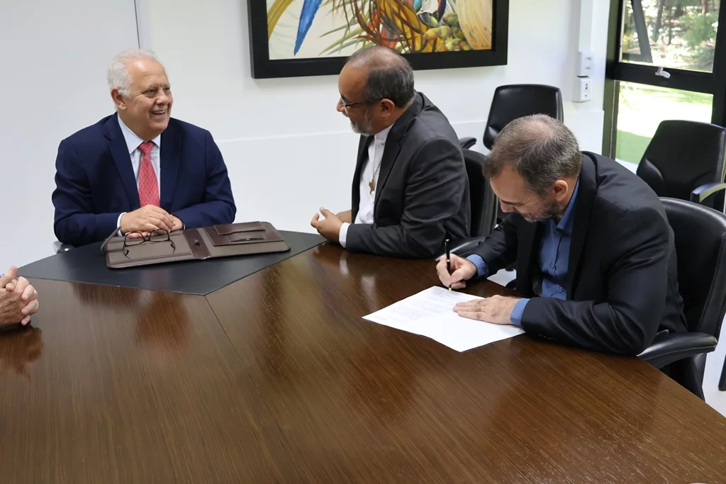 A assinatura do acordo ocorreu nesta segunda-feira (30/3) e contou com a presença do Reitor da UCDB, Padre Hermenegildo Conceição Silva; do Pró-Reitor de Administração da Católica, Taner Douglas Alves Bitencourt; do presidente do TCE-MS, Flávio Esgaib Kayatt; e do corregedor-geral da Corte de Contas, Márcio Monteiro.