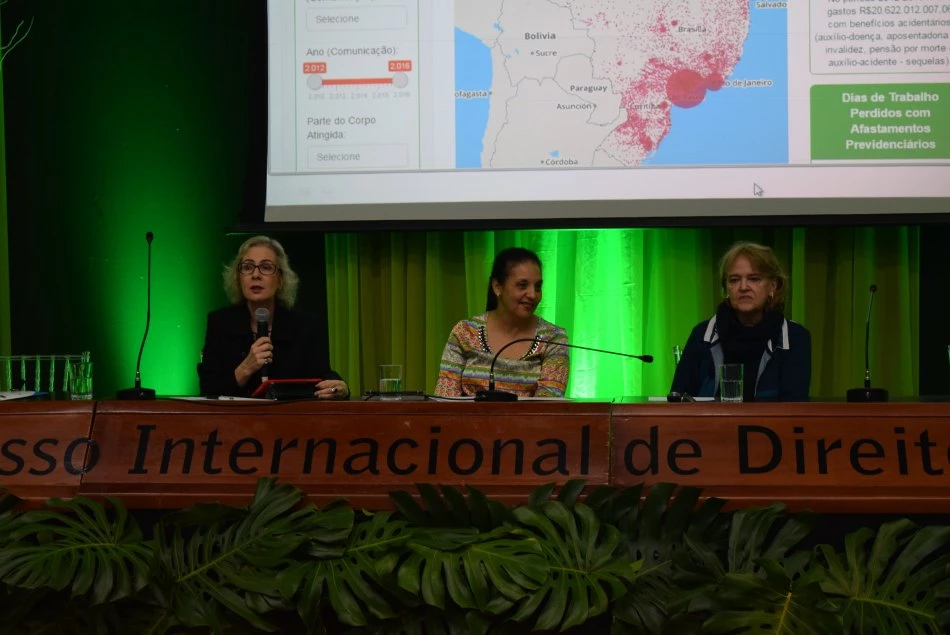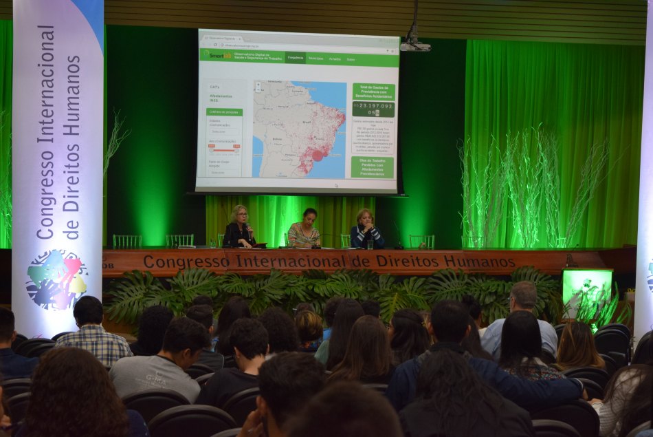 O último dia do XIV Congresso Internacional de Direitos Humanos, realizado pelo curso de Direito da Universidade Católica Dom Bosco e pela Universidade Federal de Mato Grosso do Sul, contou com mesa-redonda composta pelas professoras Dra. Simone Rezende e Dra. Liliana Adolpho Magalhães Guimarães e mediada Dra. Dolores Coutinho, debatendo o tema “Direitos Humanos no Trabalho: Saúde do Trabalhador e aspectos psicológicos.”