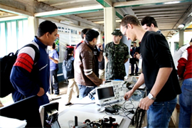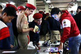 O coordenador e professor Mauro Conti Pereira e o Me. Alexandro Monteiro Carneiro acompanharam os acadêmicos dos cursos de Engenharia Mecânica, Engenharia Mecatrônica (Controle e Automação) e Engenharia de Computação. Em conjunto apresentaram os cursos e os projetos, expondo banners, o carro da Fórmula Universitária e equipamentos eletrônicos (robô de lego, robix - braço robótico, kit lego e sensores).