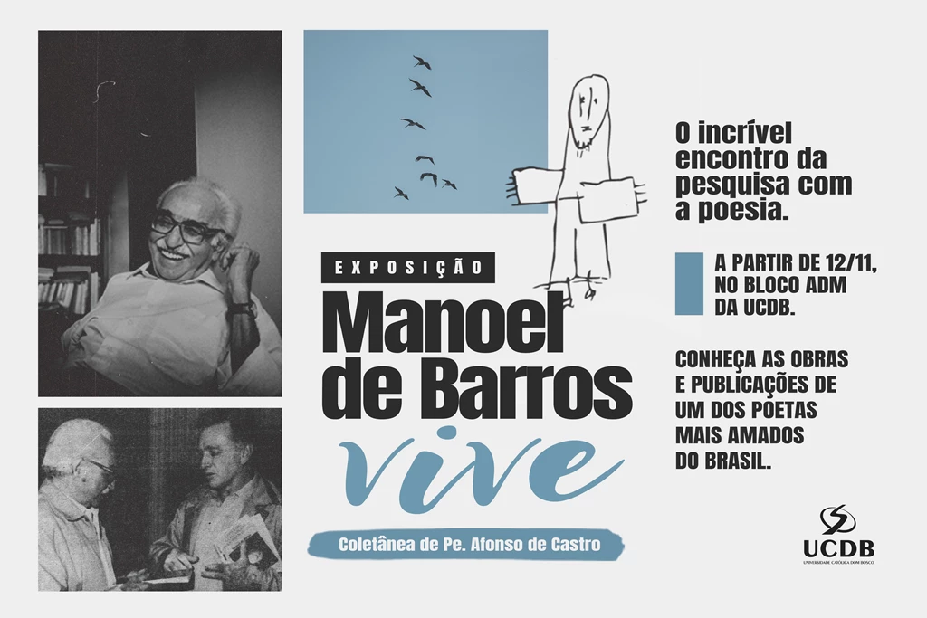 No dia 13 de novembro de 2014, Mato Grosso do Sul e o Brasil perderam o maior de seus poetas contemporâneos, Manoel de Barros. Sete anos após sua passagem, o poeta das miudezas ganha uma exposição inédita com reportagens e entrevistas reunidas por décadas pelo amigo pessoal e estudioso da obra, Pe. Dr. Afonso de Castro. A abertura da mostra “Manoel de Barros Vive” será na próxima sexta-feira (12), às 9h, na Universidade Católica Dom Bosco (UCDB).