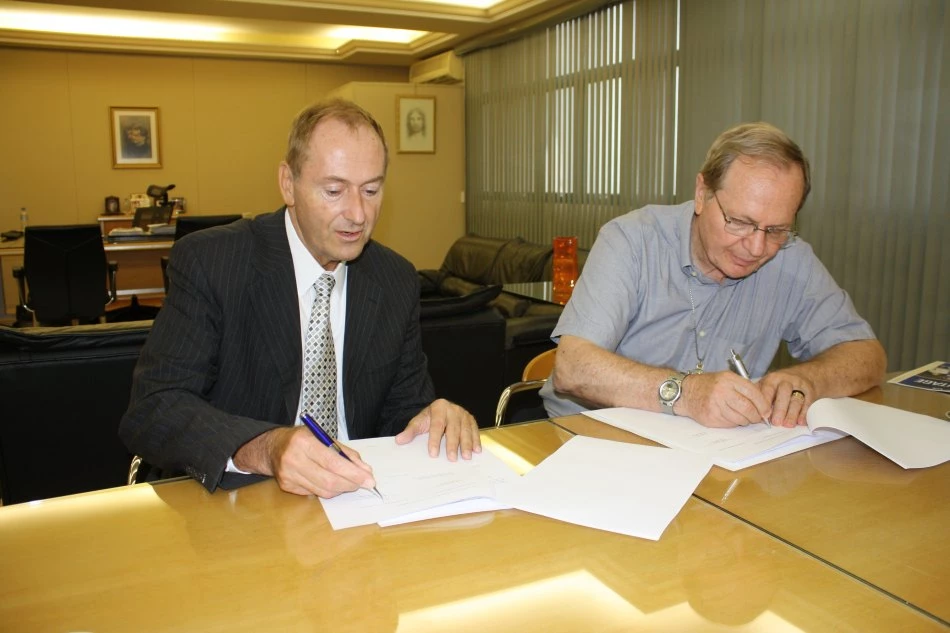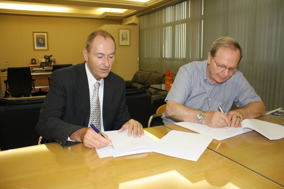 A Universidade Católica Dom Bosco e a Universidade de Nebraska, campus de Kearney, firmaram acordo de cooperação, ontem (30). A UCDB foi representada pelo Reitor, Pe. José Marinoni, e a universidade dos Estados Unidos, pelo Pró-Reitor de Relações Internacionais, Michael Stopford.
