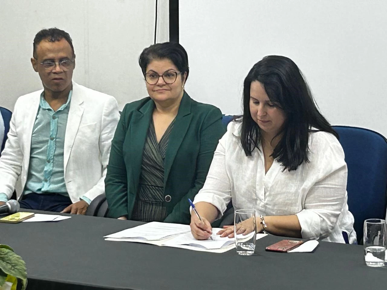 O termo foi assinado pela Pró-reitora de Graduação e Extensão, Rúbia Renata Marques, e contou também com a presença da coordenadora de curso, Flávia Feroldi, e de acadêmicos do curso.
